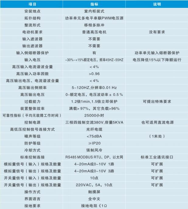 1、高高直接高壓供電:高壓變頻調速裝置高壓直接輸入,高壓直接輸出,無需輸出升壓變壓器設備占用面積小